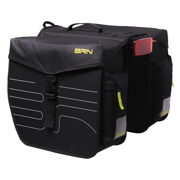 Borse BRN Elegance nere posteriori a bisaccia prodotte in cordura con imbottiture rigida e banda catarinfrangente ad alta visibilità. La sua capacità è di 24 L e le dimensioni pari a 29 x 12 x 34 cm.