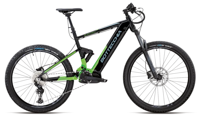 EVO ELEKTRON monta ruota posteriore 27.5″ x 2.6 e ruota anteriore 29″ x 2.30. Questa impostazione permette di avere un frontale preciso e maneggevole. Allo stesso tempo un posteriore che offre più trazione e grip. Con la ruota anteriore più grande il pilota può caricare l’assale anteriore con maggiore sicurezza e ottenere una maggiore precisione di guida, superando gli ostacoli in modo più semplice e reattivo. La ruota posteriore più larga, invece, assorbe le asperità in discesa e aumenta il grip sulle salite tecniche. Il motore SPORT OLI da 250W e coppia massima di 85 Nm ha una grande capacità di assistenza.