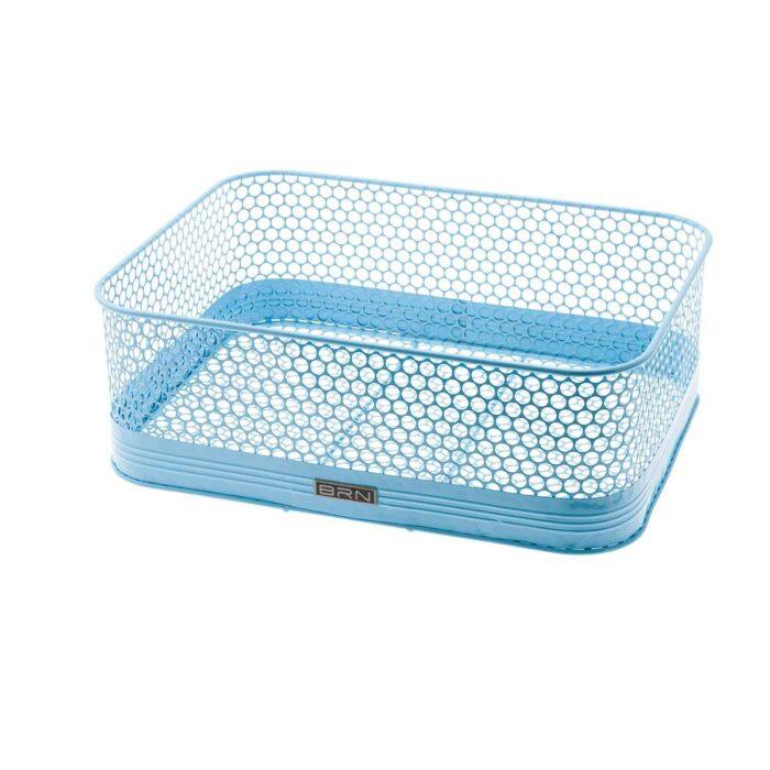 Cesto BRN Saint-Tropez azzurro. Leggero e resistente grazie al suo design e alla sua lavorazione a rete traforata si puo’ montare sia sul portapacchi anteriore che su quello posteriore. Le sue dimensioni sono 38 x 28.5 x 13 cm.